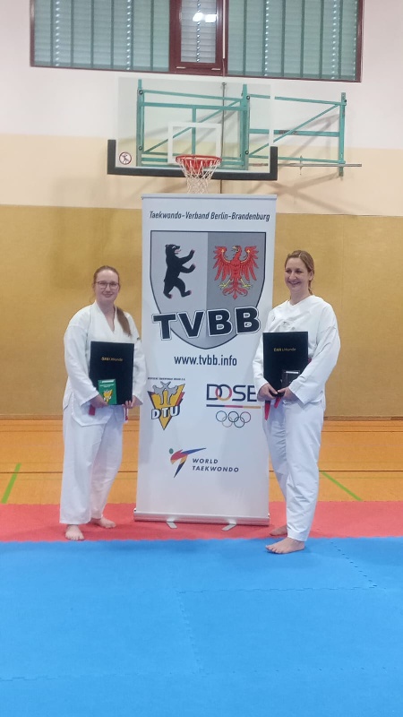 Cora und Juliane haben Heute an der Dan Prüfung teilgenommen und diese auch bestanden. Nun haben sie den Schwarzgurt und sind Meister.